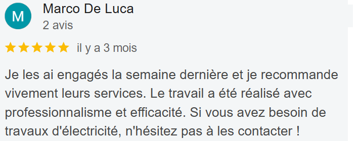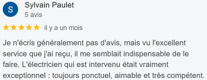 Diagnostic rapide et travaux électriques réalisés correctement dès la première visite.